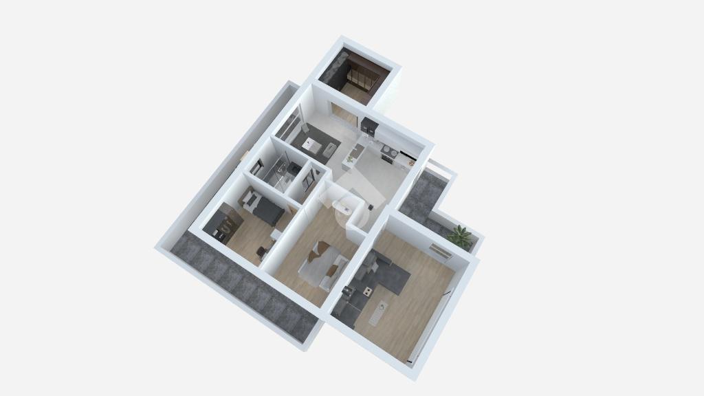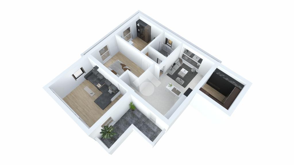 Si tratta di circa 100 mq, suddivisi tra 2 stanze da letto, zona giorno, un bagno, due sottotetti sfruttabili come studio o zona relax e due balconi che costeggiano i tre lati dell'appartamento.