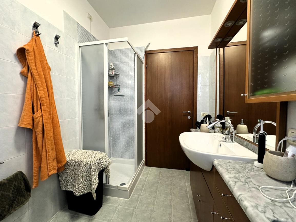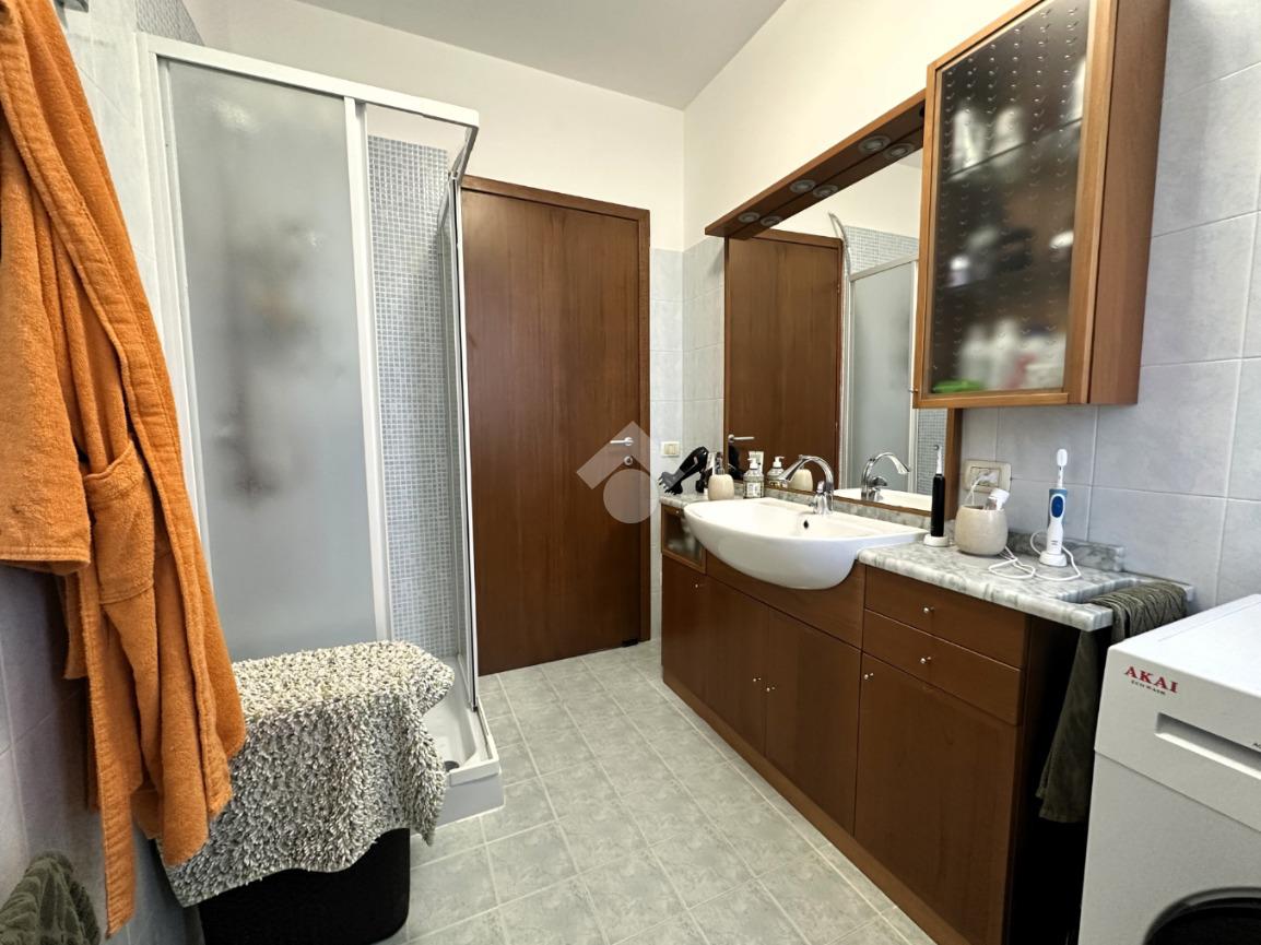 La zona notte comprende un bagno finestrato con doccia e una camera da letto matrimoniale con affaccio su un secondo balcone.