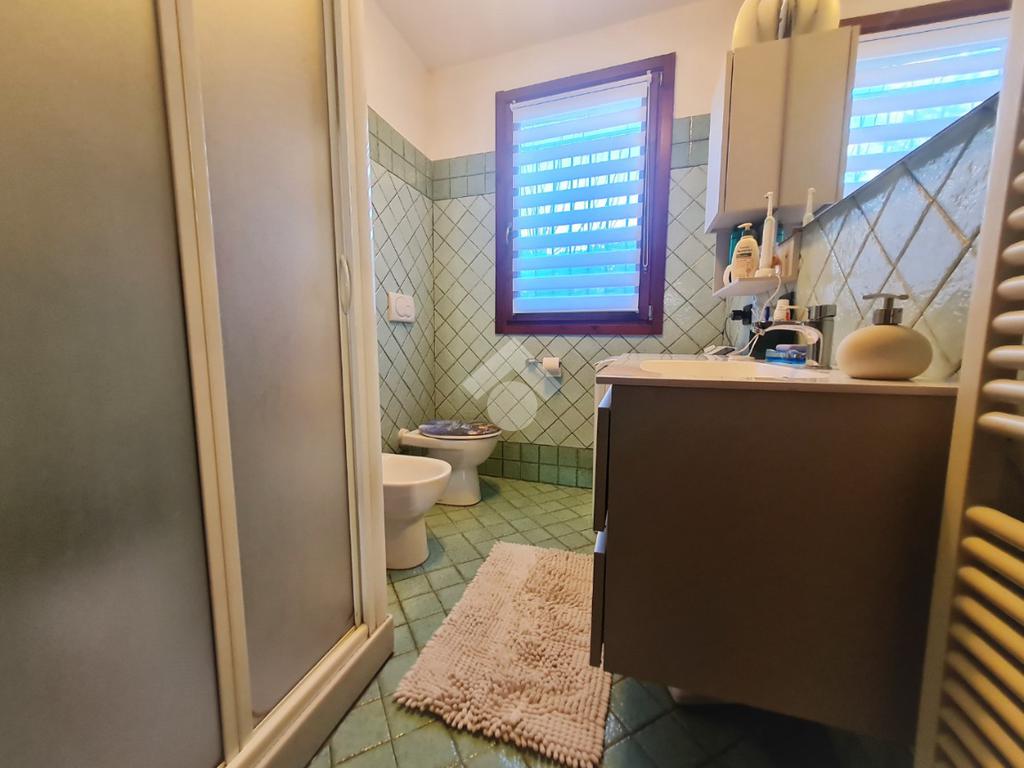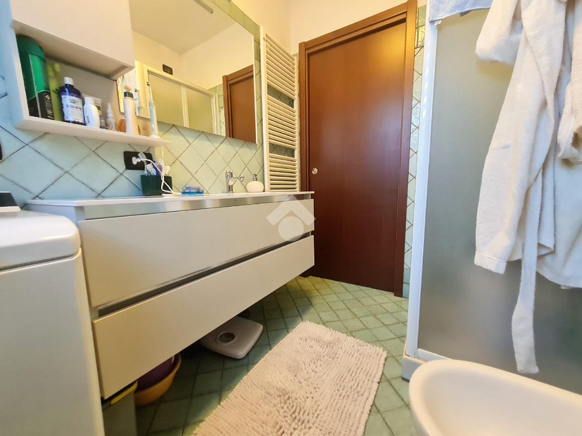 Il bagno finestrato è dotato di doccia, mentre un piccolo sgabuzzino offre un comodo spazio di servizio.